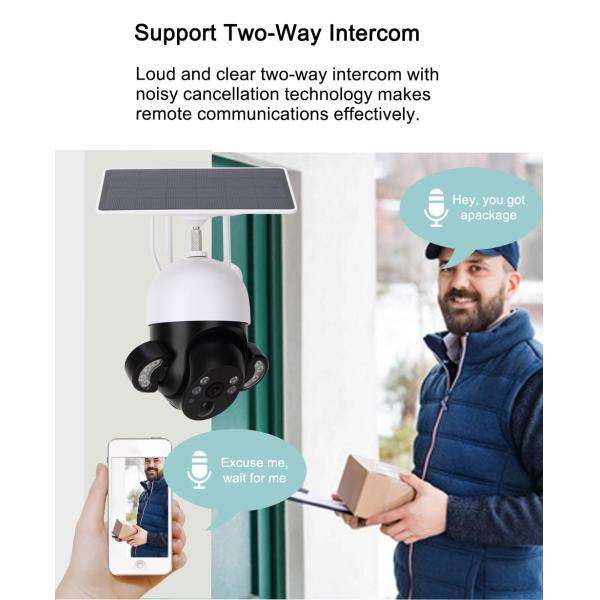 1. One Price For Two Main Functions: YDS20 = One 360o PTZ Solar Camera + One Smart Solar FLoodlight.